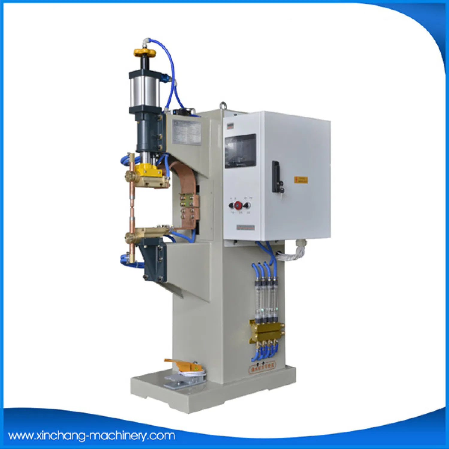溶接機には、トランス、上部電極、下部電極、その他の銅ブロックなどの複数の主要コンポーネントをカバーする包括的な冷却水システムが装備されています。このシステムは流量計ベースの配水設計を採用しており、各流量計は個別に調整可能です。これにより、ユーザーは実際の動作条件に応じて各コンポーネントの冷却水の流れを正確に制御でき、すべての主要コンポーネントが最適な温度範囲内で動作するようになります。効率的な冷却システムは、過熱による機器の損傷を防ぎ、溶接機の長期安定した動作を保証し、機器の全体的な耐用年数を延ばします。